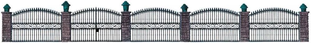 Add distinctive detail to a wide range of HO scenes and structures with this elegant Worught Iron Fence kit from Cornerstone.