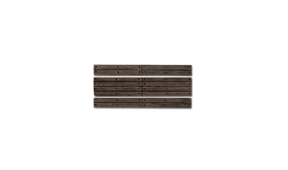 Realistic looking and ready-to-place. Injection molded plastic Wood Planks are notched to fit over rail spikes. Includes pre-cut shims to correspond to proper code. Two crossings in each package.